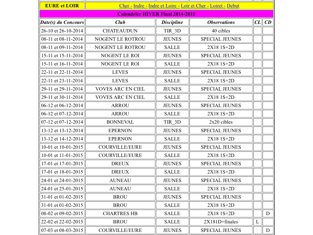 Voici le calendrier de la saison salle 2014-2015 pour l' Eure et Loir
