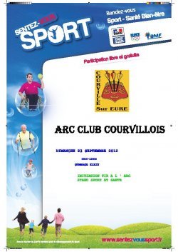 L'arc club courvillois participera à l'opération sentez-vous sport le dimanche 23/09 de 8h00 à 12h00 au gymnase Klein. A cette occasion venez vous intiez au tir à l'arc et prendre des informations "sport et santé".